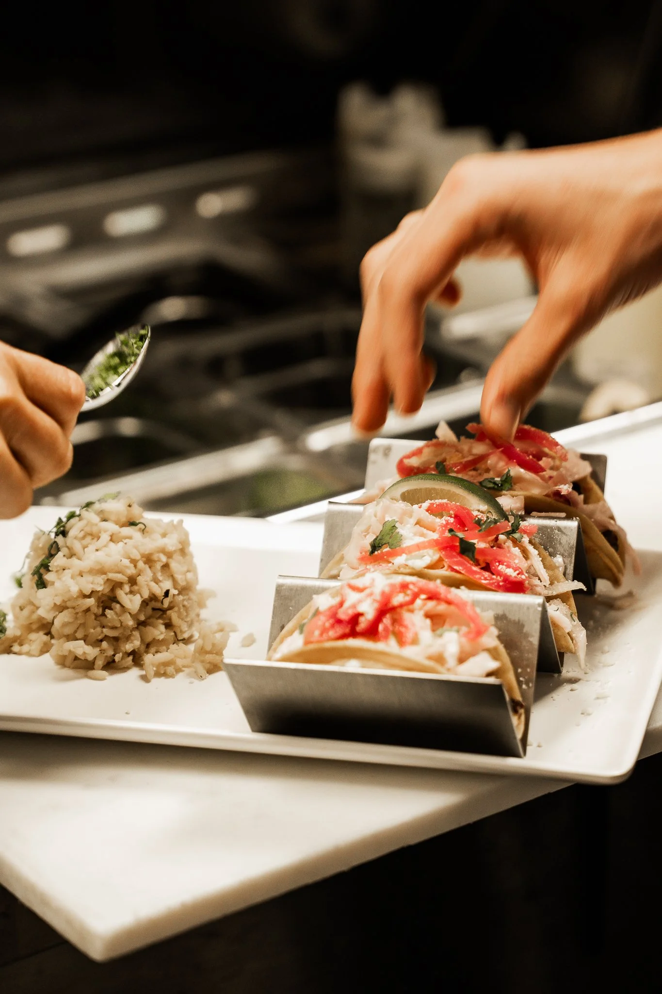 Together, the tacos and Island Rice create a well-proportioned meal that satisfies both flavor cravings and appetite.